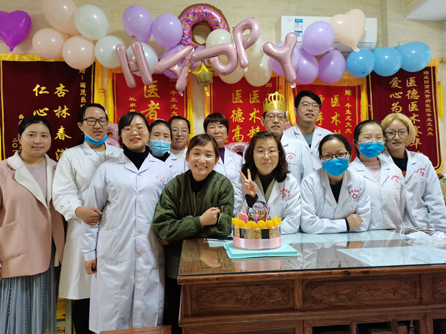 更新日期:2020-11-11 已浏览:2428次为弘扬我院文化,增强医院团队凝聚力,让员工感受到咸阳雨茂医院大家庭的温暖,给员工长期以来辛勤工作给予肯定和感谢,表达雨茂医院对员工的点滴关怀,我院办公室牵头组织,大家集体策划,于11月10日下午,在我院二楼为门诊部牛生龙医生过了一个难忘的生日,大家欢声笑语,幸福萦绕其中。