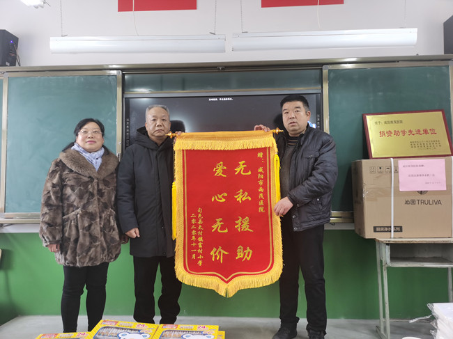 更新日期:2020-12-12 已浏览:2824次扶贫济困,爱心助学,传递的是爱心,营造的是希望。12月9日上午,我院院长杜治锋、执行院长冯丽萍,在中国好人、全国助残模范、陕西省劳模、咸阳市民营企业家协会会长郑勇同志带领下,来到了旬邑县太村镇赤道富村小学,参加了“捐资助学、关爱儿童”的现场捐赠活动。