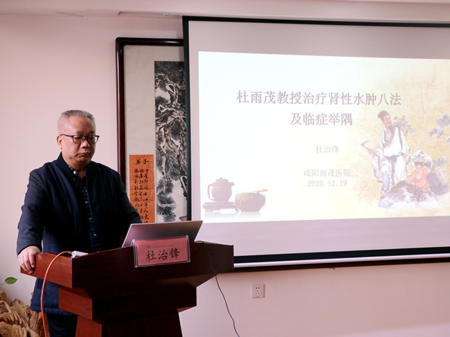 咸阳雨茂医院院长、杜雨茂教授嫡子杜治锋博士致辞:欢迎杜雨茂教授的弟子及再传弟子们回家相聚,简要介绍了陕西杜氏肾病学术流派五代传承人中的主要代表人物及学术贡献,指出举办本次研修班的目的与意义。