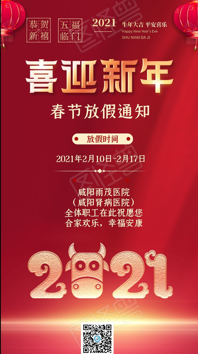 咸阳雨茂医院(咸阳肾病医院)2021年春节放假通知