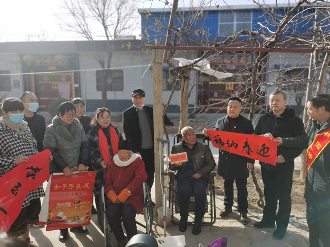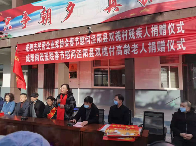 春节将至,年味渐浓。2021年2月5日(农历腊月二十四日),咸阳雨茂医院执行院长冯丽萍和咸阳市民营企业家一行人员赴泾阳县兴隆镇双槐村慰问残疾人、高龄老人。