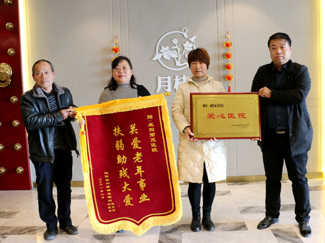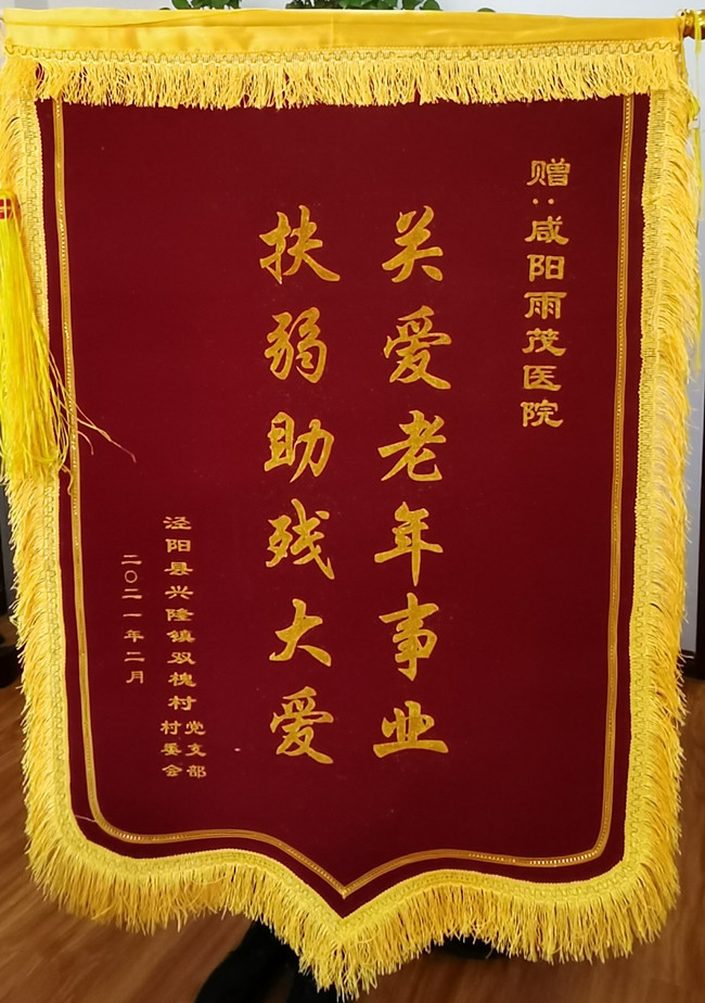 泾阳县兴隆镇双槐村党支部、村委会赠予咸阳雨茂医院“关爱老年事业、扶弱助残大爱”。