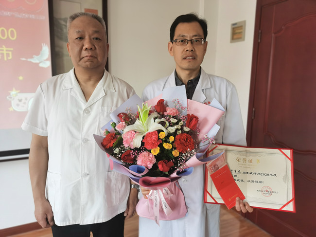 大会第一项,对2021年5月8日咸阳市卫生健康委员会审批表彰“百名优秀护士”彭维娜、“优秀医师”牛生龙、2021年3月16日中共咸阳市委精神文明建设指导委员会审批表彰“模范市民”冯丽萍,颁发荣誉证书及奖励。
