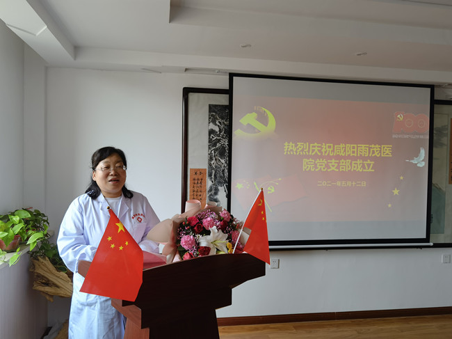 大会第二项,咸阳雨茂医院党支部成立,从政治上是我院的一件喜事,从企业发展历程上是我院的一件大事。党支部书记赵天才教授讲话:党支部要发挥战斗堡垒作用,党员要发扬先锋模范作用,培养入党积极分子,推动促进医院各项工作发展,开创新局面。