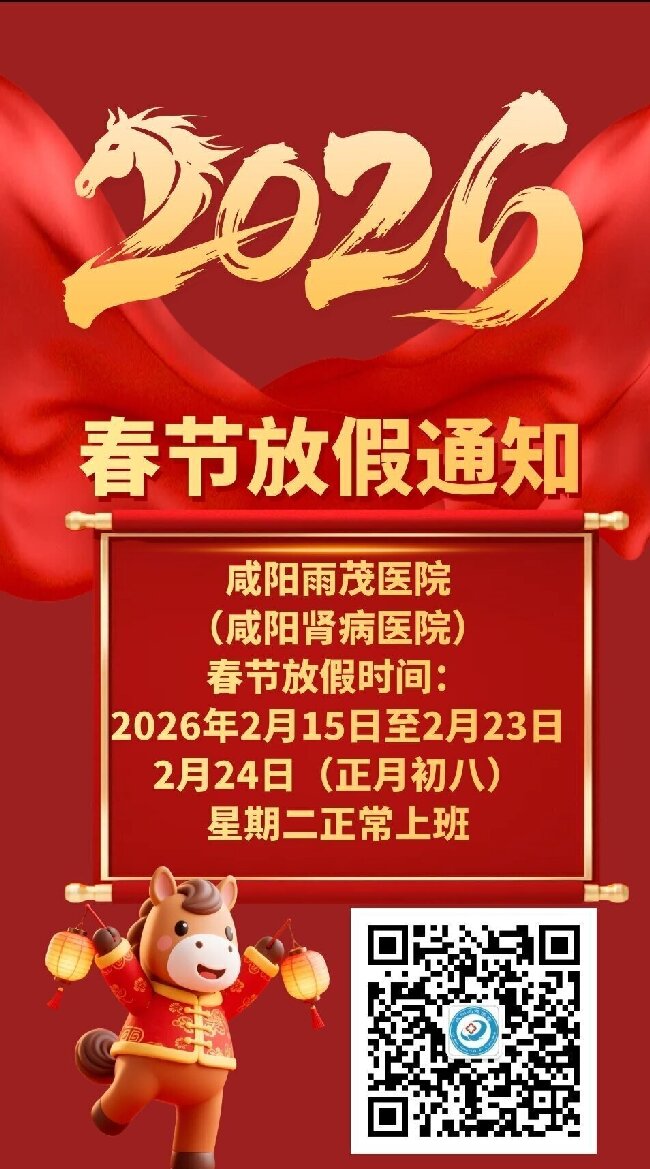 咸阳雨茂医院(咸阳肾病医院)2026年春节放假通知